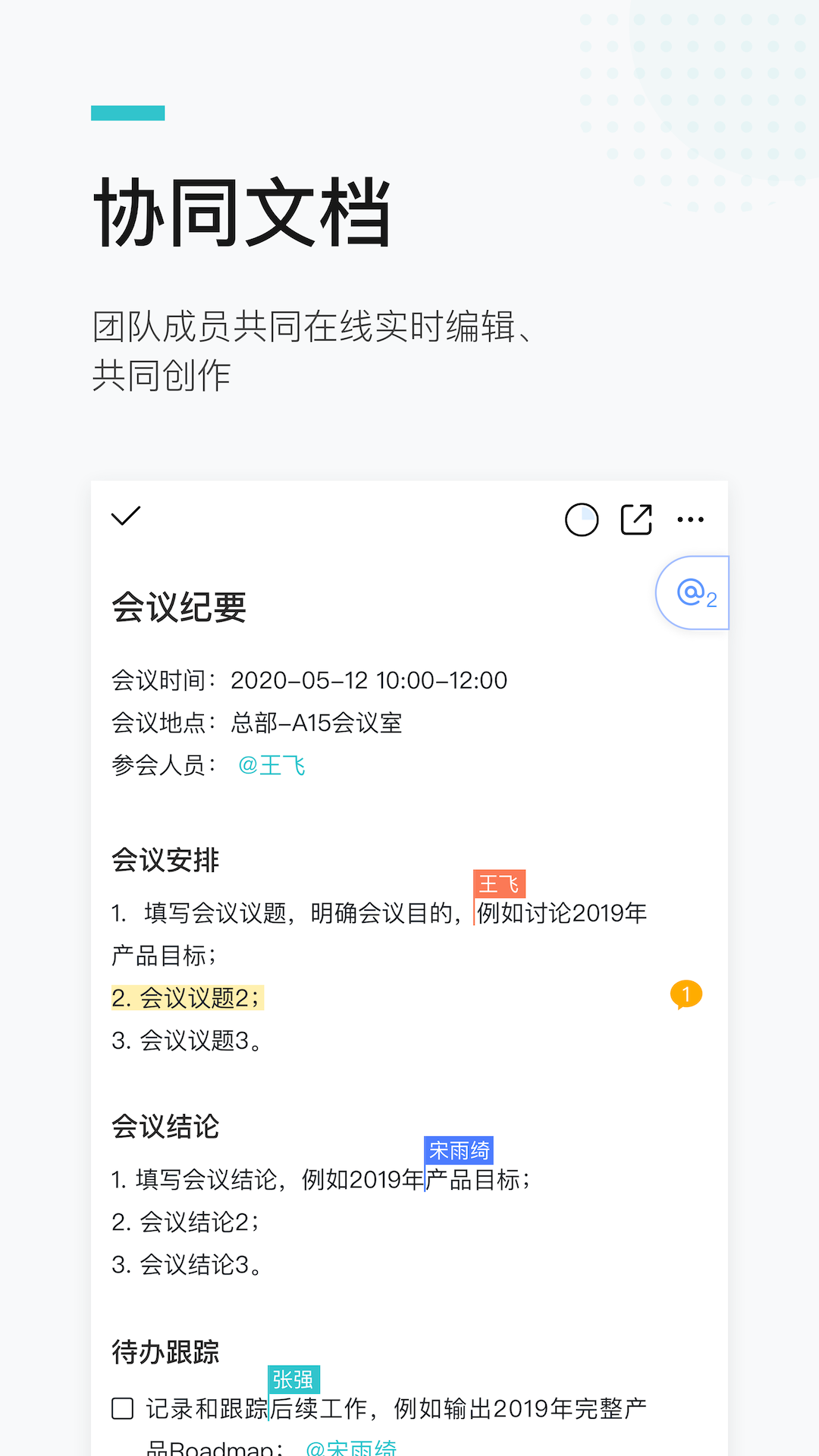 几个人可以同时在一份文档里改内容,不管你是用手机还是网页都能实时看到最新的改动,还能在旁边加个批注讨论一下。