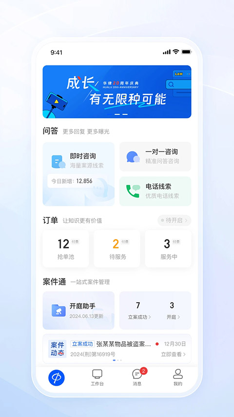 1、案源池新鲜又多,优质委托随时刷,律师接单机会抓得稳。