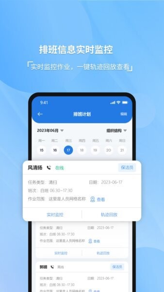 实时看人员位置执行进度,轨迹回放定位核查异常,现场情况有证据不扯皮。