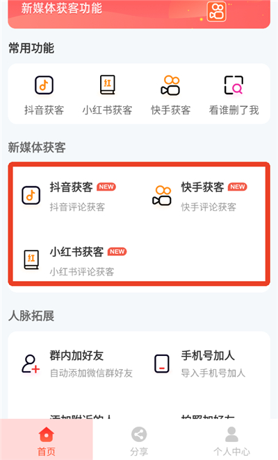 微商大师营销工具App简直是微商人的贴身小秘书,专门帮大伙儿搞定找客户、聊感情和管社群这些头疼事儿。它能帮你从抖音、小红书、快手这些热门平台里“挖”出潜在买家,还能一键群发消息、图片,甚至偷偷看看谁把你删了。管群更是它的强项,发公告、退群、拉人进组都能批量操作,省下的时间够你多聊好几个大客户,效率直接拉满!