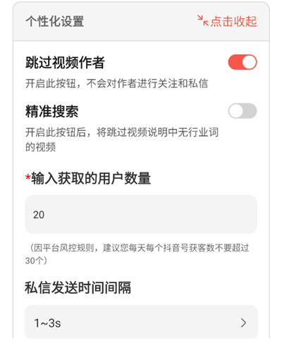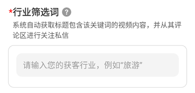 2、第一步得填“行业筛选词”,这步不能省。系统会顺着这个词去找视频,然后盯着评论区去关注、私信。
