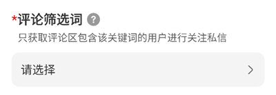 3、接着填“评论筛选词”,这也是必填项。只有评论区带了这几个字的用户,才会被系统锁定去关注私信。