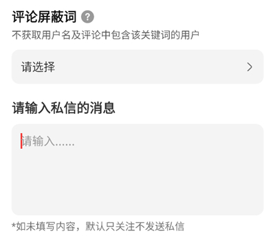 4、最后把“评论屏蔽词”(过滤掉不想要的)和“私信内容”(自动发的话术)填好就行。