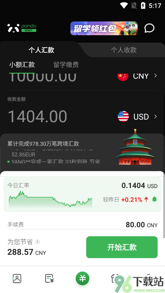 熊猫速汇App是一款专注于跨境汇款的移动应用,背后有红杉资本和光速资本等知名机构支持,整体运营更显靠谱。它主打快速到账、低手续费和透明汇率,让跨国转账不再繁琐耗时,尤其适合有海外生活、留学或生意往来需求的用户。