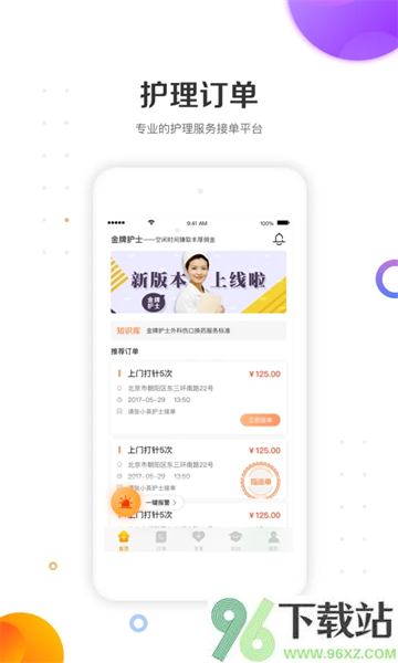 1、专注居家护理与康复领域的专业接单平台,订单真实可靠,流程清晰透明。