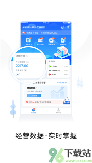 智慧商户通是专为各类实体商家量身打造的一款店铺管理工具。界面清爽不花哨,操作逻辑清晰,把订单、商品、客户评价、售后服务这些日常高频功能都放在了显眼位置,老板们点几下就能快速掌握店铺运营全貌。不管是查账、看销量,还是设置语音播报收款提醒,都能轻松搞定,让经营更省心、更高效。 用它不仅能随时盯紧每一笔进账,避免漏单错单,还能通过内置的账目整理功能,清楚看到每天、每周甚至每月的营收走势,辅助你及时调整经营策略。对刚起步的小店来说,这相当于多了一个贴身的数字管家。