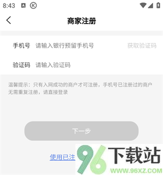 2、用你名下入网时留的手机号进行注册(注意:只有已经成功入网的商户才能注册;如果手机号之前注册过,直接登录就行,别重复操作)