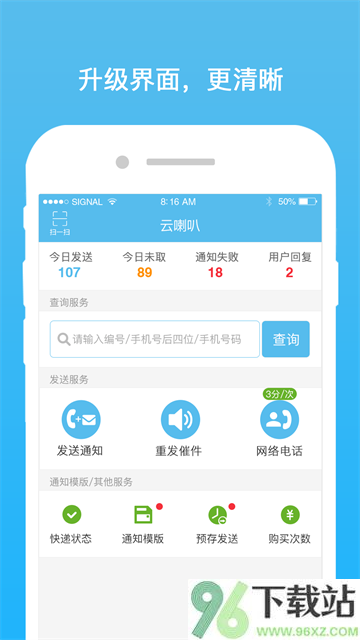 云喇叭App是专为快递小哥量身打造的一款通知工具,能自动批量拨打电话、发送短信提醒用户取件。借助云端服务和移动网络,它把原本繁琐的逐个通知流程变得又快又省心,不仅减少了重复操作,还能清楚掌握每条通知是否送达,让派件工作更顺畅、更高效。