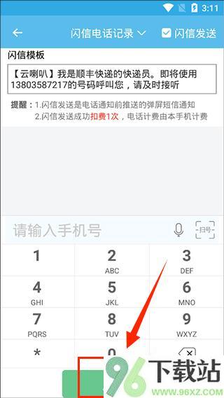 2、输入对方手机号,如果想用闪信功能(注意这会扣你手机的短信费),就把闪信选项勾上。上面的模板区域可以自由编辑要发的内容,比如“您的快递已到,请速取”之类的。