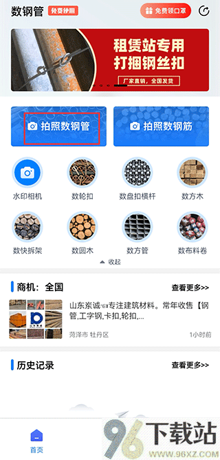 1、打开App首页,点那个“拍照数钢管”的按钮就行。