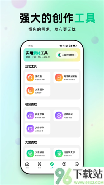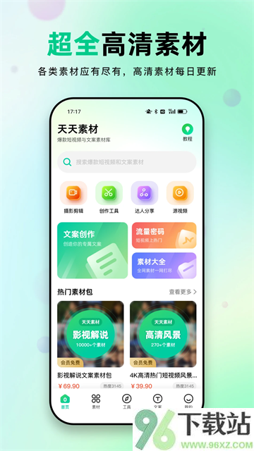 天天素材app是个挺能打的创作帮手,里面塞满了高清视频、精美图片和各种风格的文案,不管是做短视频还是发朋友圈都能找到趁手的料。它不光有自家平台的素材库,还能抓取主流电商平台的商品图和视频,关键是一键就能存到手机里,还没水印。更方便的是,连抖音上的视频也能通过它下载下来,省得你到处找去水印工具。顺带还搭了一堆实用小功能,像改MD5值、图片转文字、拼长图、压图这些活儿,基本不用再装别的软件了。