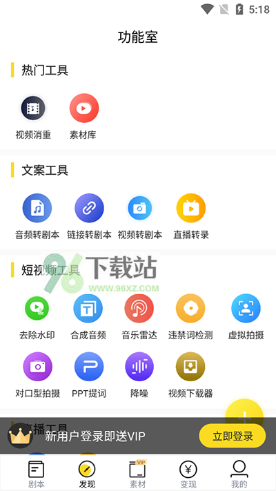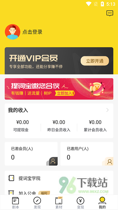 2、进入“我的”,完成登录注册,然后你可以直接开启新人福利了,它包含了很多福利,会直接送给你,然后你可以看到“提词”“剧本”等多种创作功能选项。