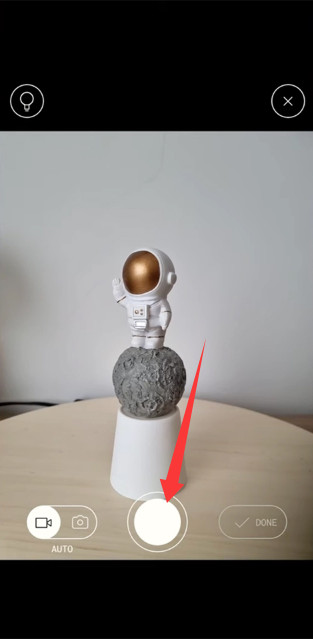 1、启动应用后点开拍摄按钮,先从任意角度拍下第一张照片作为起点。