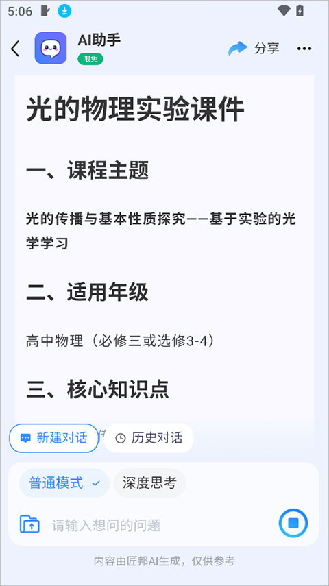 把具体要求写清楚发送出去,系统便会自动帮你产出对应的课件内容。