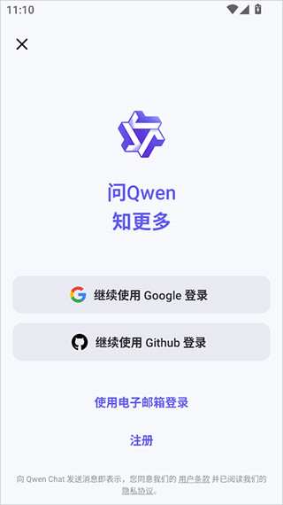 打开QwenChat网页,不登录也能直接开始聊天。如果想登录,可以用GitHub或者谷歌账号,挺方便的。